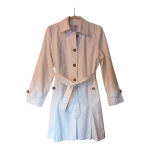 Trench Coat Cream Color Vtg Y2K Gallery Belted P leated Large GoodUsedCondition.