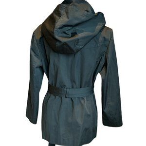 Like new trench coat style Ellen Tracy belted jacket with removable hood.