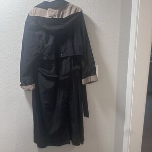 Trench Coat Womens XL Maxi Black Tie Belt Hood Classic Raincoat Overcoat Goth
