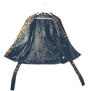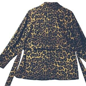 Linea Coat Women's M Long Sleeve Pockets Belted Collar Button Up Lined Leopard