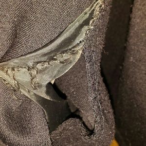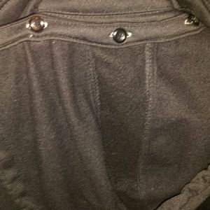 One of the pockets are ripped it has a detachable hood