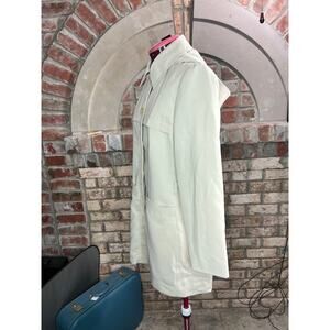 wonderful short trench coat with button off hood has one small rip inside the lining.
