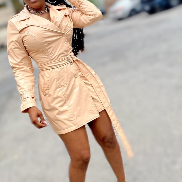 Size XL fits like a Large large. Nude Shane Justin trench dress. Made with faux Latin Patent leather. Hugs waist nicely.
