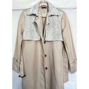 Beautiful cream and white trench coat || buckle tie at waist || size small || never worn || perfect condition ||