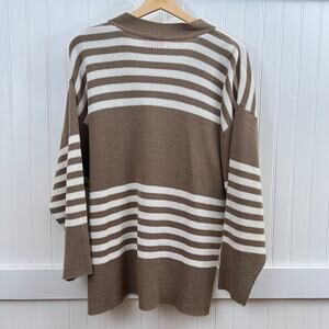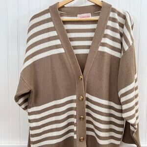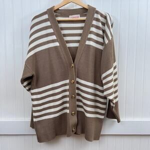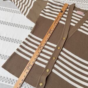 Trend Club Vintage Oversized Striped Cardigan Gold Buttons V-Neck Long Sleeve