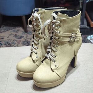 Trend set Fashion Round Toe Stiletto Lace-up High Heel boot 11.5 cm Platform 9.5
