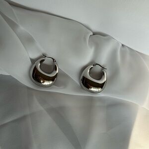 These elegant silver hoop earrings add a touch of sophistication to any outfit. Zara style earrings.
