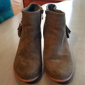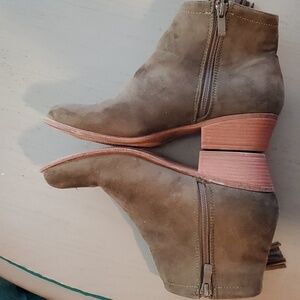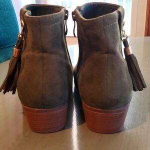 Trends Up- Womens Green Suede Side Zip Ankle Booties boots Boho neutral Sz.7