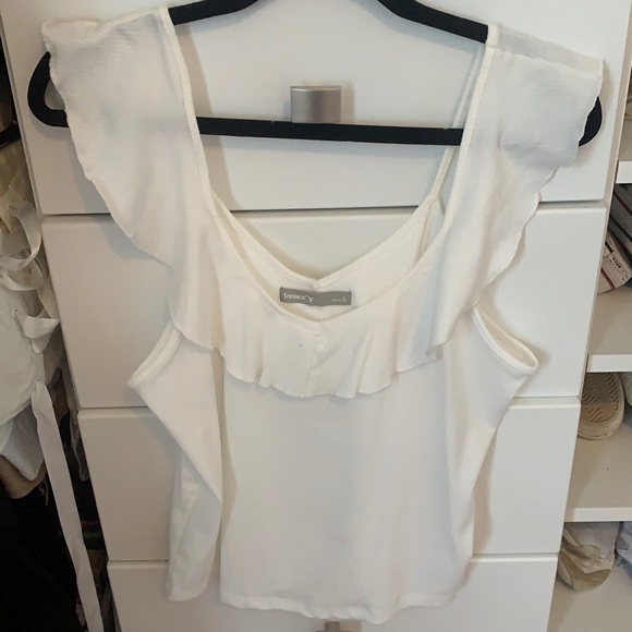 Not super white but not cream kindve in between Size large but fits medium Can also be work off the shoulders NWT NEVER WORN!!!
