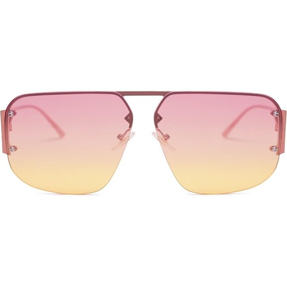Trendy Aviator Sunglasses Mens Womens Retro Metal Rimless Pink Frame Shades