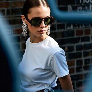 Trendy Aviator Sunglasses for Women Flat Top Designer Stylish Classic Square Fra