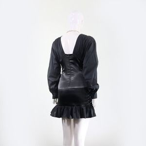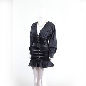 Step into the spotlight with this stunning black satin corset top from B-Sharp Collection! Its sleek design features an eye-catching lace-up front that will cinch your waist and enhance your silhouette. The ruffled hem adds a flirty touch to this party-perfect piece. Ideal for any chic event, its puff sleeves and V-neck give a nod to vintage glam with a modern twist. Pair with your favorite skinny jeans or mini skirt to turn heads! 🌟 And to top it off - snag a free jewelry gift with purchase (because who doesn't love a little sparkle?). Note: Return not available, and it's in like-new condition (original tag missing).