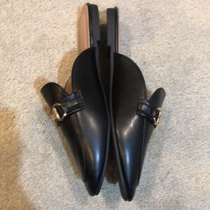 Trendy Black Slip On Flat Mules w/ Gold Hardware-EU Size 43/US Size 10