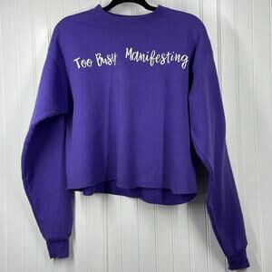 Trendy By Ivy Women's Purpple Crew Neck Cropped Oversized Sweatshirt Size Large