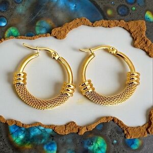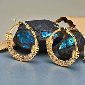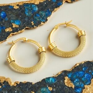 Trendy Chic 18K Gold Plated Stainless Steel Textured Mesh Hoop Earrings