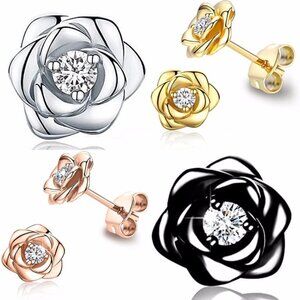 🔥 Trendy Design Rose Flower Stud CZ Earrings For Women, HA4491