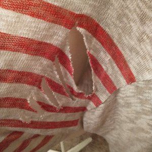 Grey light weight juniors size crop sweater, featuring crosses instead of stars. Size is L. Varsity style stripes on the cuffs. Has distress cuts on chest, company made. Brand new, never worn, missing tags. Loved it. Bought it. Removed the tags. Never worn. Wants to go to good home.