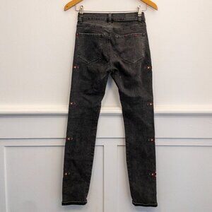 Trendy Embroidered Skinny Jeans 25W 30L Black Denim Aztec Boho Western Style