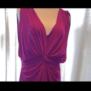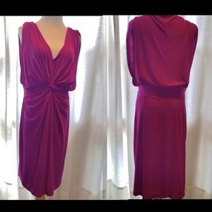 A twisted knot enhances the flattering appeal of this midi dress from Sandra Darren.