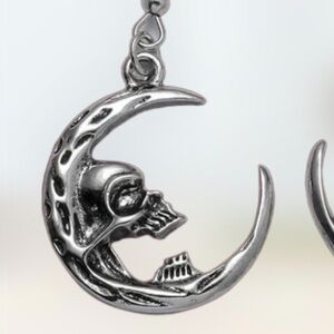 Get These Trendy Goth Unisex Moon & Skull Face Silver Tone Dangle Earrings Today