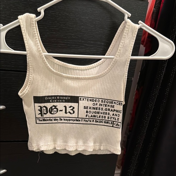 Stylish ribbed tank top with bold graphic print. Perfect for casual outings.