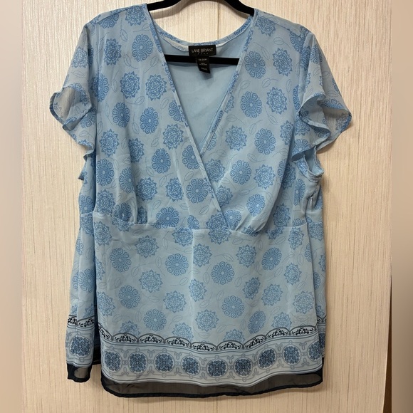 Trendy Lane Bryant Plus Size 2X Blue Boho Floral Print Empire Waist V-Neck Top