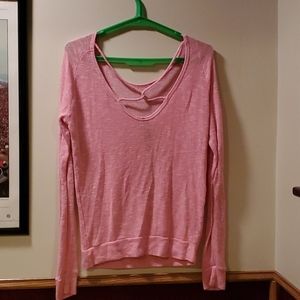 EUC -Size XS, sheer pink, lightweight sweater with fun open back twist design. Nice and soft! Worn less than a handful of times!