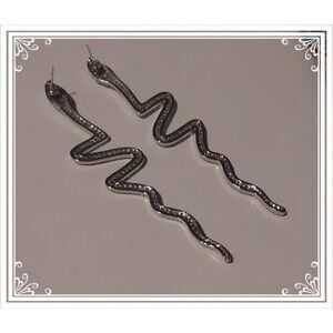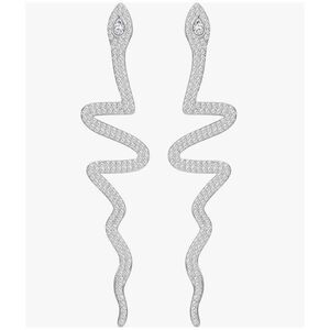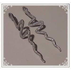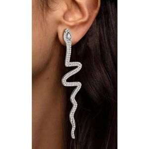 Trendy New Extra Long Silver Rhinestone Snake Design Earrings