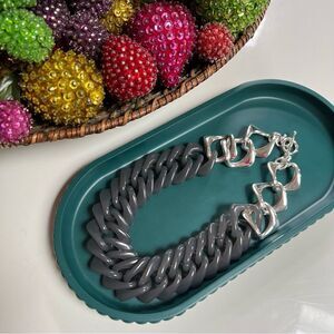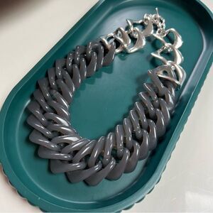 Trendy Oversized Acrylic Resin Chain Link Gray Silver Toned Statement Necklace