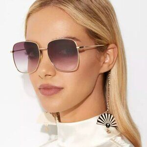 Flat mirrored lens with UV protection. These are pink mirror on the outside, green lense to look through. Gold frames. Looks good on a variety of face shapes!
