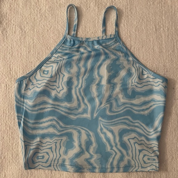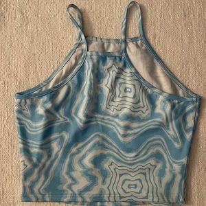 Blue and white patterned tank. Trendy and good to dress up or down. No damage and has only been worn once! Comes from a pet and smoke free home