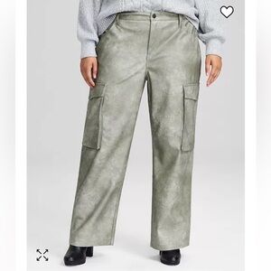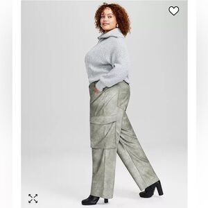 Trendy Plus Size Faux-Leather Cargo Pants in size 28W