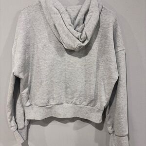 Stay cozy and stylish with this gray zip-up hoodie. Perfect for casual outings and layering.