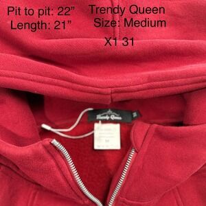 Keywords: Trendy Queen, Red hoodie, Pullover hoodie, Womens hoodie, Half zip hoodie, Cropped hoodie, Casual sweatshirt, Athleisure, Streetwear, Medium size, Cozy hoodie, Kangaroo pocket, Sporty hoodie