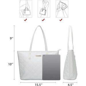 Perfect Dimension: 15.5"W x 10"H x 4.5"D, shoulder strap drop: 9". This tote bag has plenty of room to fit your 13-inch laptop.