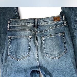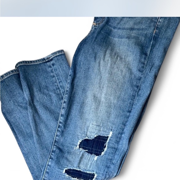 Fashionable blue jeans with a stylish ripped design.
