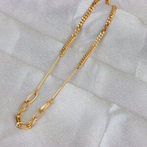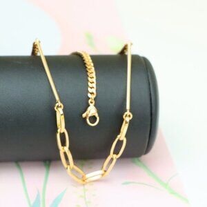 Elegant and contemporary rose gold necklace featuring sleek bar and link elements, perfect for daily wear or layering.