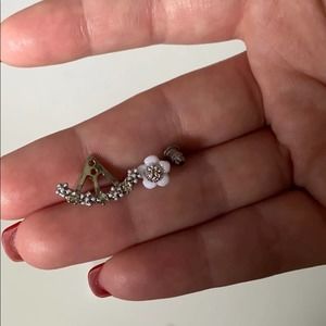 Trendy Silver Daisy Jeweled Cuff Earrings