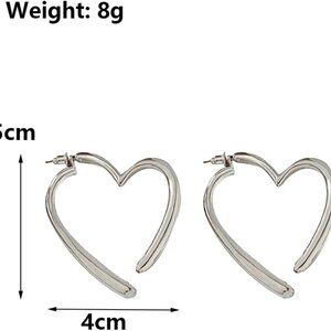 Features: Big love-shaped hoops, lightweight and easy to wear, with a sleek, polished finish. Great for dressing up or adding a fun flair to everyday looks.