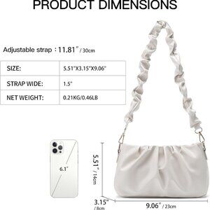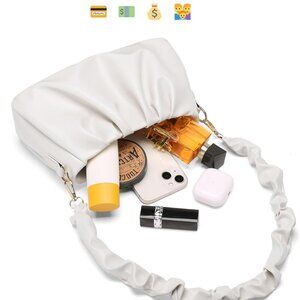 Trendy Small Hobo Tote Bag for Women — Compact, stylish, and lightweight for on-the-go chic. Size: 5.51 x 3.15 x 9.06 inches Color: White Condition: Brand new, no flaws. Features: Crafted from soft, smell-free leather, this sleek shoulder bag offers a comfortable feel. It’s perfect for carrying your essentials with a spacious main compartment for cards, lipstick, keys, phone, and more. The detachable shoulder strap adds versatility for crossbody or shoulder wear, making it great for errands, casual outings, or dressing up. Material: Leather with a smooth fabric lining Measurements: Size: 5.51 x 3.15 x 9.06 inches; Shoulder strap: 11.81 inches Great for: Everyday errands, brunch dates, or gifting to a stylish friend — a timeless piece that pairs with any look! Ships quick from smoke-free, pet-free home. Friendly seller, reasonable offers welcome. Bundle & save!