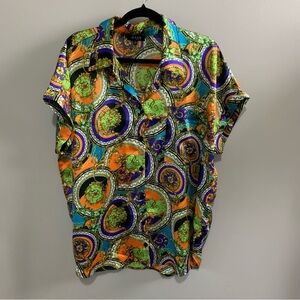 Eye-catching Versace shirt with a dynamic pattern. Features a mix of bright colors for a bold look. Like new worn 1 time