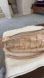 This tan shoulder bag features a chic woven checkerboard pattern, offering a stylish nod to early 2000s fashion. Its crescent shape and ruched shoulder strap make it a standout accessory for any occasion.