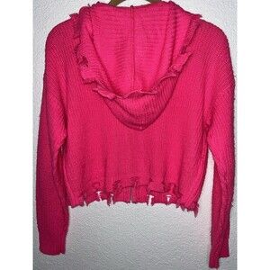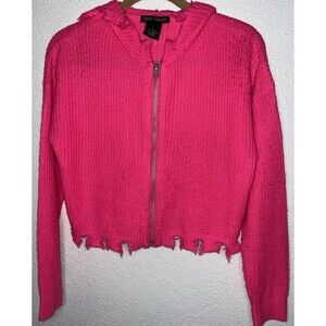 Trendy Threads Distressed Cropped Knitted Sweater Women Size Large Neon Pink