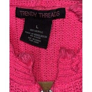 This Trendy Threads Distressed Cropped Knitted Sweater in neon pink is the perfect addition to any woman's winter wardrobe. The tight-knit sweater features a solid pattern, round neckline, and long sleeves, making it ideal for casual occasions. With a size large and regular fit, this sweater is both stylish and comfortable, perfect for the colder seasons. Made from acrylic material and hand wash only, this sweater is a trendy and practical choice for the modern woman.