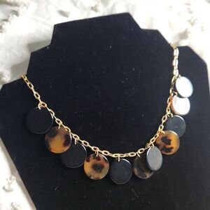 Trendy Tortoise Shell & Gold Disc Charm Necklace