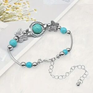Trendy Turquoise Decor Butterfly Charm Bracelet, Vintage Style