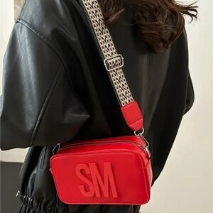 Trendy Vegan Leather Rectangle Crossbody Chest Bag Adjustable Strap