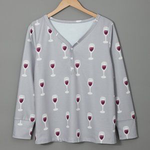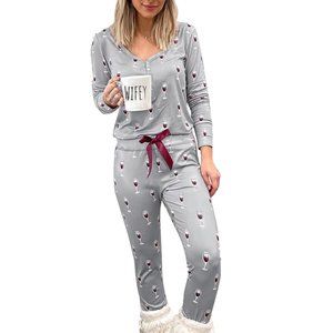 Adorable & SUPER comfy 2-piece pajama set for Ladies. Gorgeously designed & adorned with wine glasses. PERFECT pajamas for any wine lover to lounge around in. Much loved Birthday or Christmas gift! 95%Polyester+5%Spandex. See size chart in pictures for measurements. From Smoke free home. Check out my other listings to bundle and SAVE on shipping costs. Boutique item/comes with plastic poly bag.