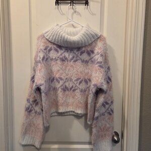 Trendy! Wild Fable Cropped Fuzzy Knit Sweater - Pastel Fair Isle - Size L