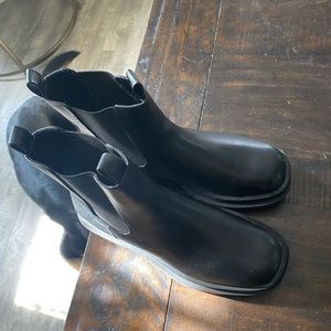 Never worn! I bought these and another pair at the same time. Perfect brand new condition. Super trendy square toe chunky chelsea boots :)